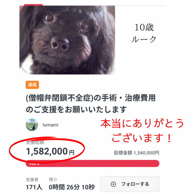 皆さまからご支援頂いた資金は、手術費用154万円のために使用させて頂きます。