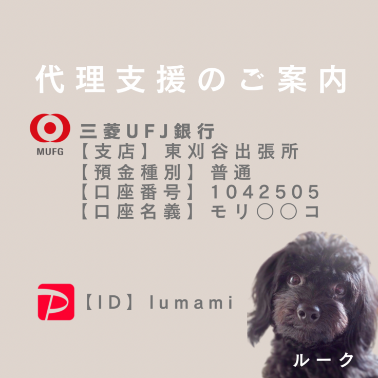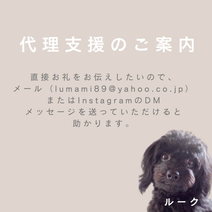 ①メール(lumami89@yahoo.co.jp)またはInstagramのDMから代理支援のメッセージを送ってください。