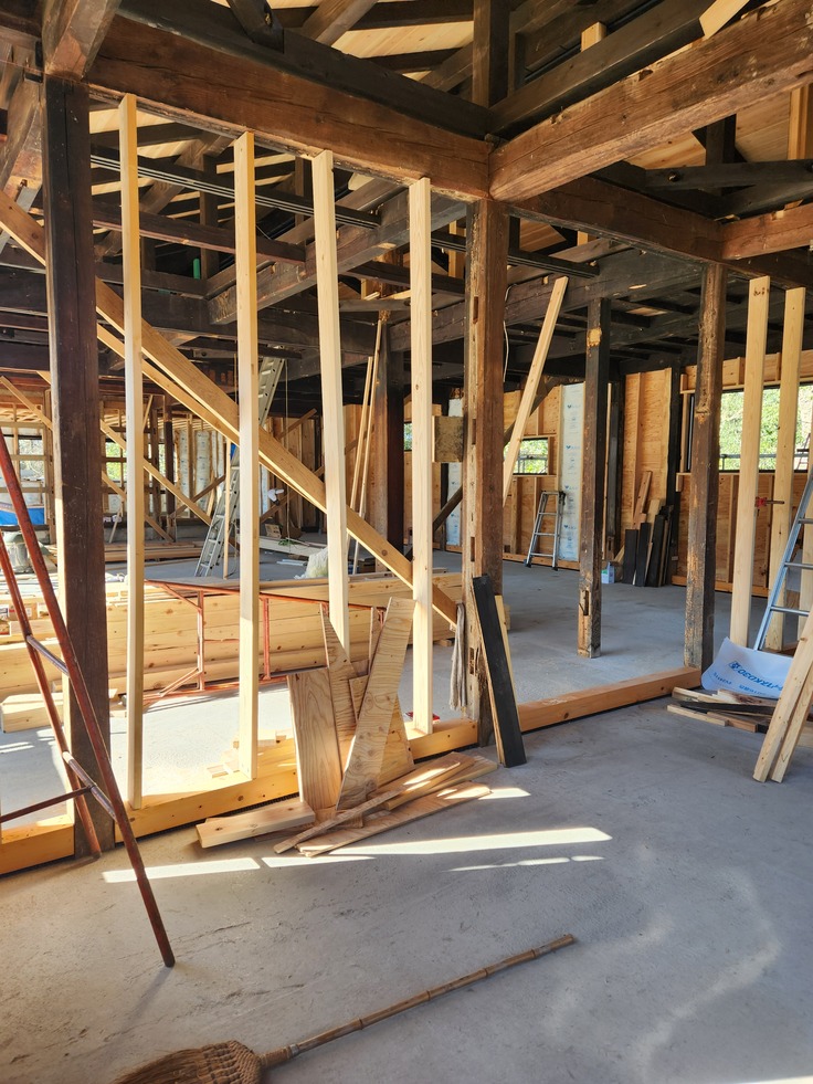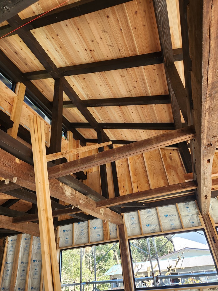 吹き抜け部分は古い柱も磨いて綺麗にしてもらいます。