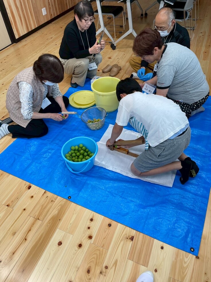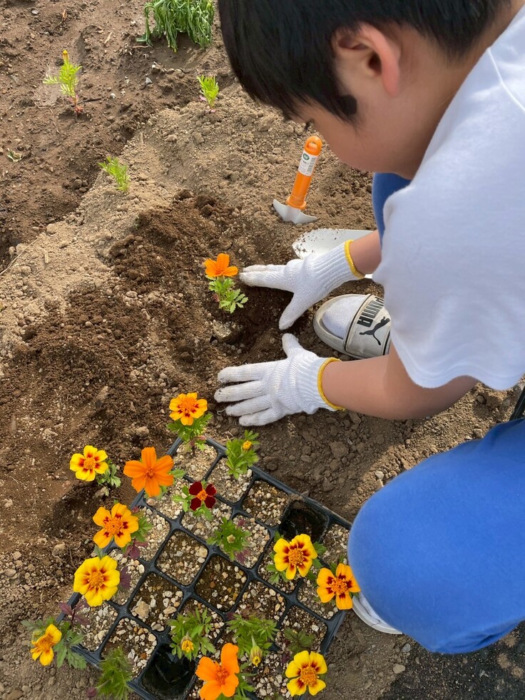 みんなでマリーゴールドの苗を花壇に植えたりカリカリ梅を作ったり、