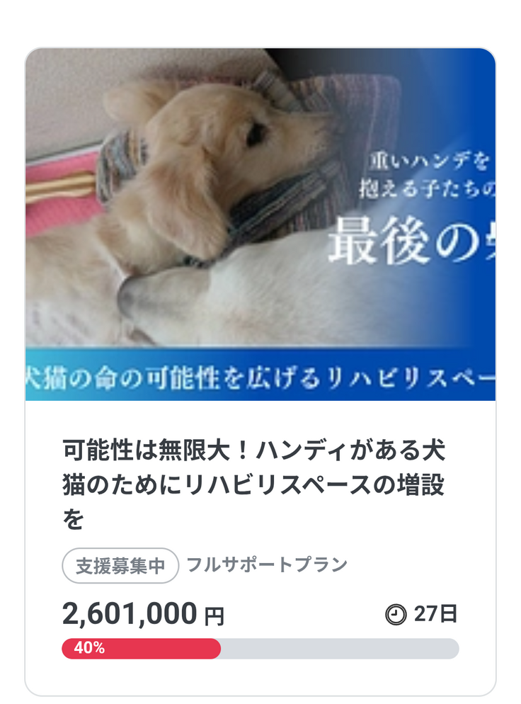 おかげ様で40%突破‼️目標達成まであと60%…終了日まで1ヶ月をきりました‼️どうかお力添えを😖