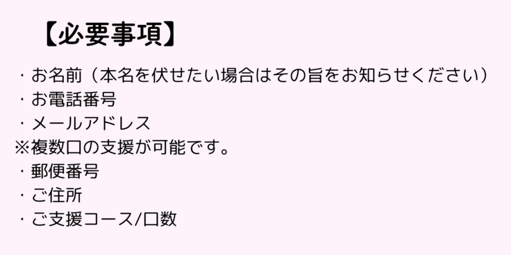 ※ご入金が確認でき次第、代理でクラウドファンディングの決済手続きをさせていただきます。