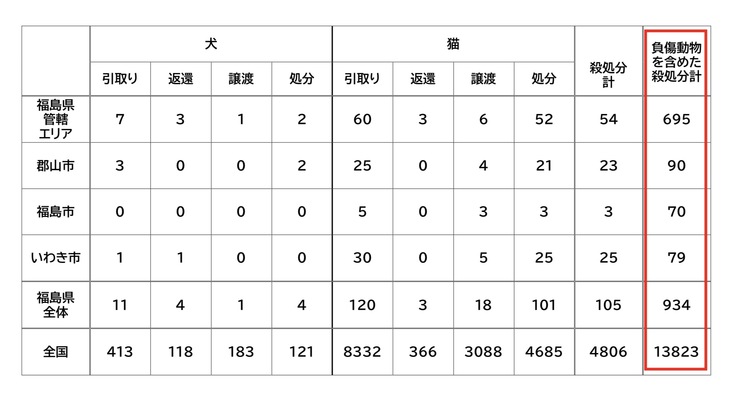 全国殺処分頭数が9017頭に対し、福島県は885頭