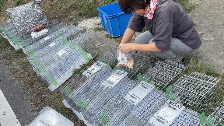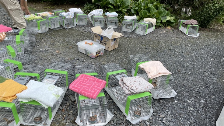 高齢者の方や頭数が多い現場では、一斉TNRのお手伝いをしています。