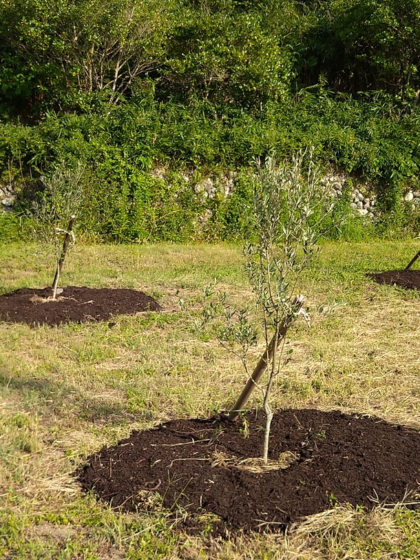 猛暑の続いたこの夏、頑張っているオリーブの木にオリーブたい肥を追肥しました。