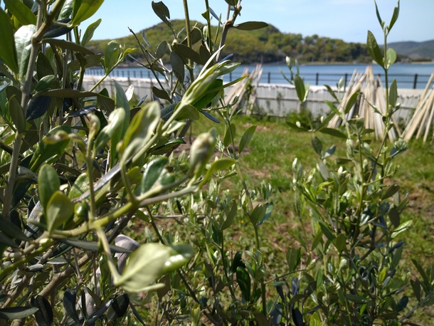みんなで植えてから一ヶ月が過ぎて新しい12本のオリーブたちは、4月の若葉のなかで新しい芽を出し始めています。