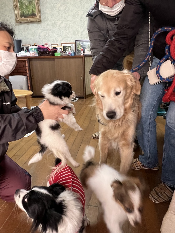 まる子つる子、ちゃちゃ子、カール、先住犬のピンクみんなでご挨拶。