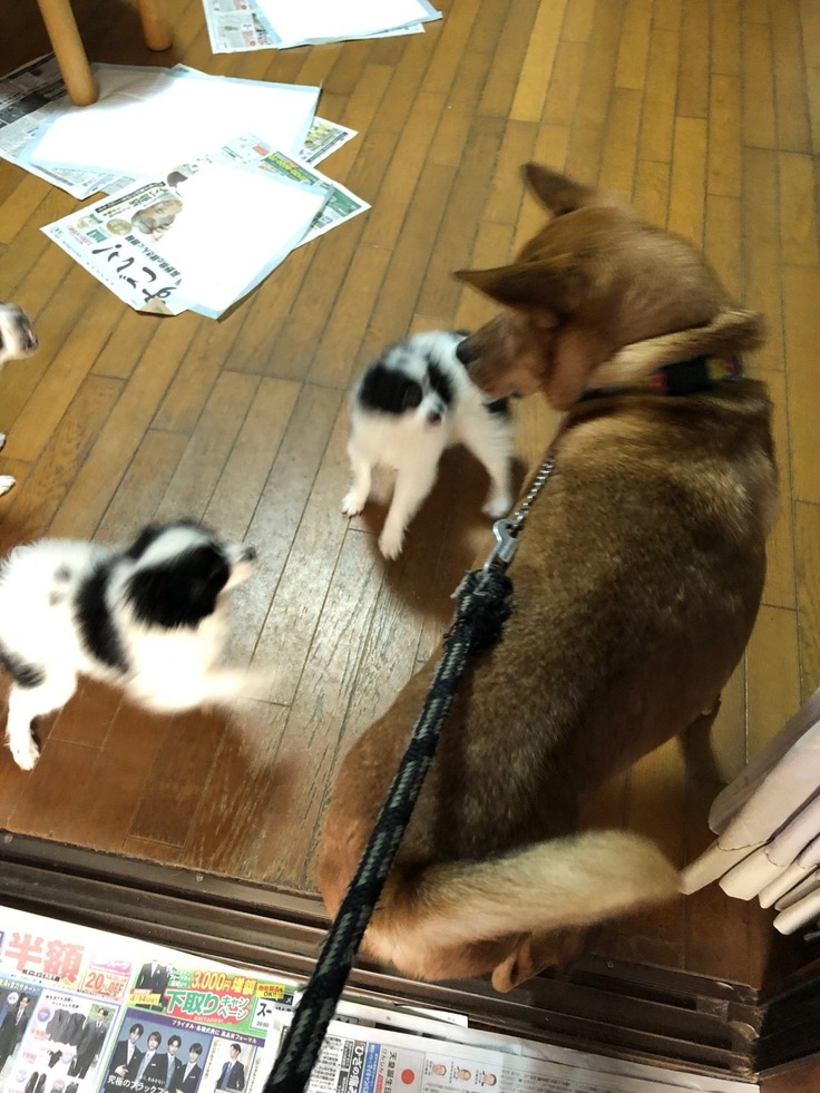 シゲ先輩が通る時は、つる子とまる子揃って駆けつけてきます。