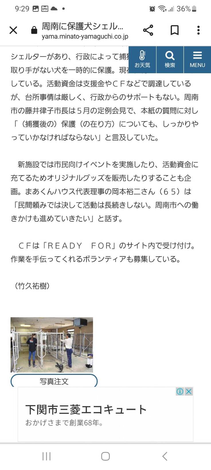 以前もまぁくんハウスの活動を掲載して下さいました山口新聞さんがこの度も、クラウドファンディングを始めたこと、シェルターを作ることをお話しすると早急に取材して下さいました