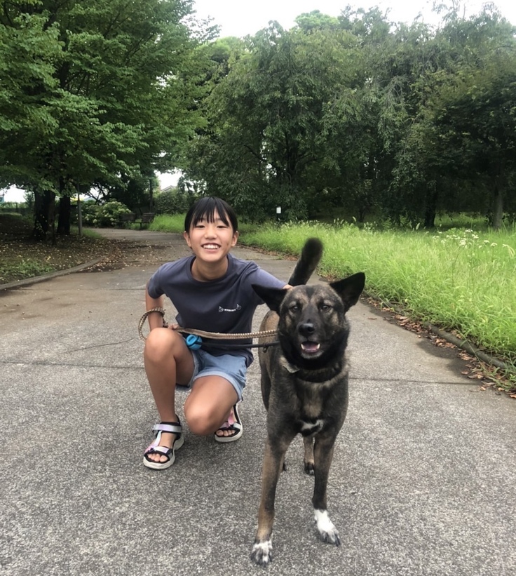 トレーナーさんの力を借りてお散歩ができるようになってから、今では帰りたくないと拒否するほどのお散歩好きです!