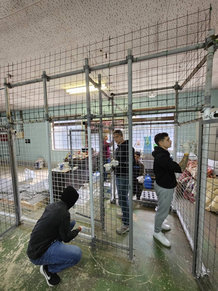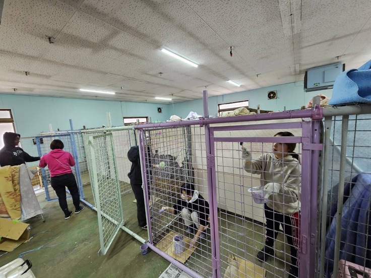 入っていない犬舎のペンキ塗り(匂いのない水性ペンキ使用)をしていただきました
