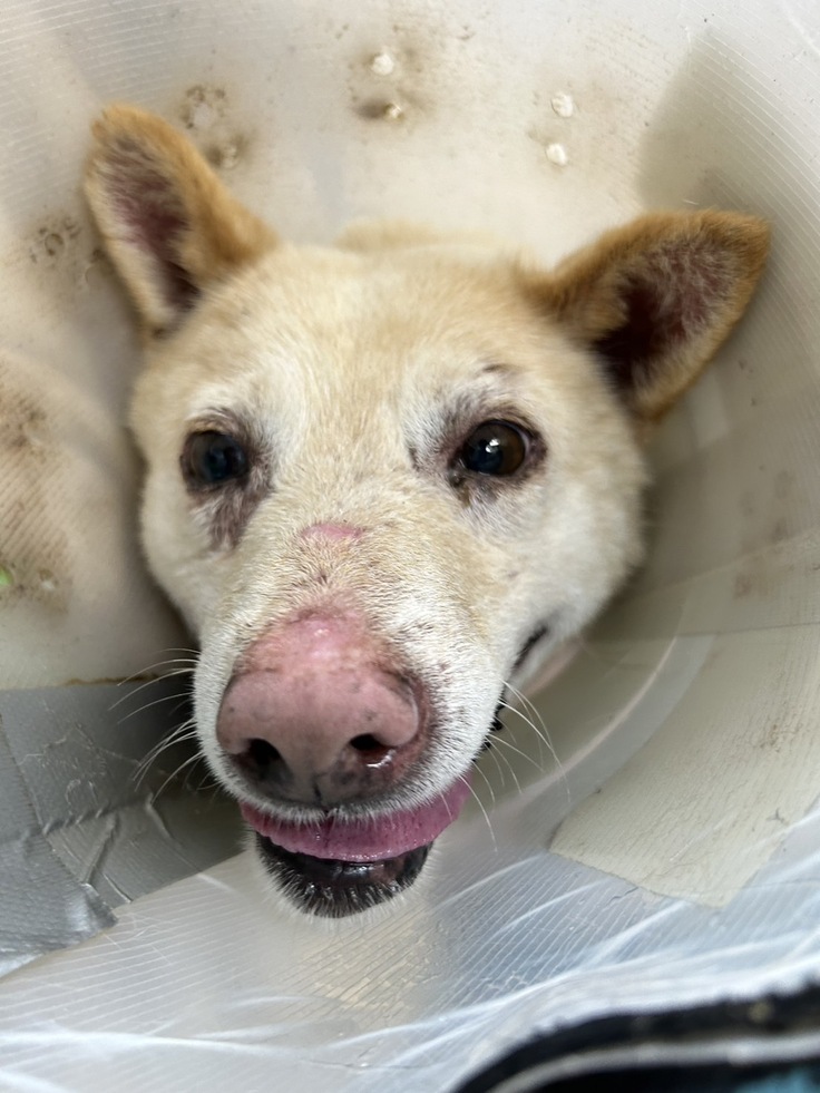 1月に怪我をしてカラーを付けて頑張っていたハピ