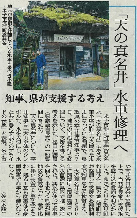 鳥取県の「天の真名井水車復活プロジェクト」の支援策について