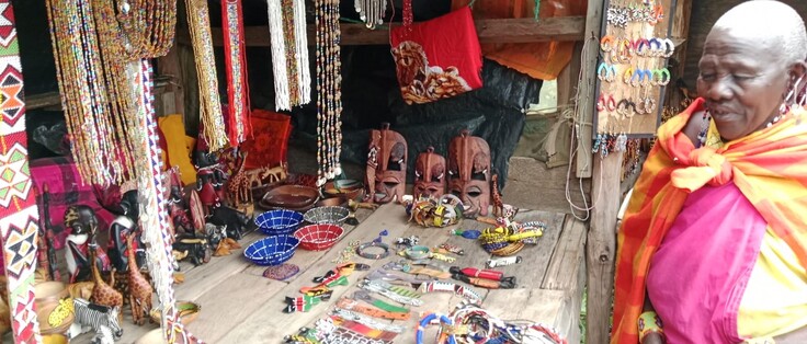 沢山のマサイ手作りアクセサリーが並ぶショップ、開店