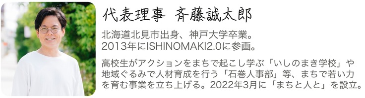 一般社団法人ISHINOMAKI2.0から教育事業を継承しつつ「一人ひとりがまちで学び、挑戦し、活躍することで、まちが豊かになる循環」を生み出すことを目指し、「一般財団法人まちと人と」の設立を決意。
