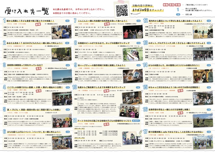 毎年夏と春に開催する「長期休みまきボラ」と、年間通してイベント等のボランティアを募集する「単発まきボラ」の企画・マッチングを行っています。