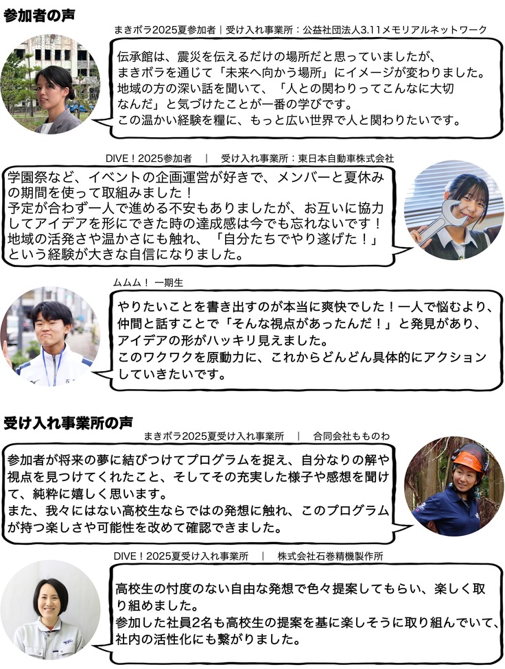 高校生・大学生が石巻地域の企業やNPOでボランティアを行うことで、「地域の人や企業の魅力」と「自分の好き」を見つけるプログラムです。