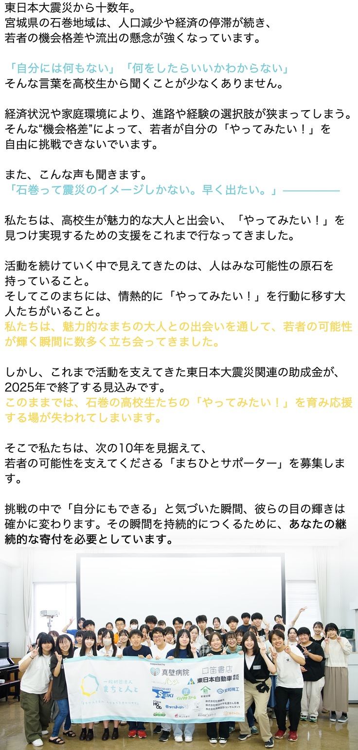 「もっと本格的に、もっと継続的に、石巻の若者の力になりたい」