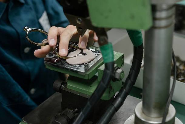 板材に切り込みを入れて一つ一つ手仕事で曲げています。