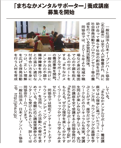 4月20日付の毎日新聞(東海3県版)にまちサポの記事が掲載されました。