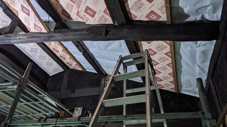 ここ数日、バリアフリールームの天井をDIYリノベーションしています。