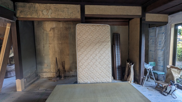 壁の合板ははがして、断熱材を施工し、石膏ボード以外の何か白い壁にします。プロジェクターで映像を映せるように。