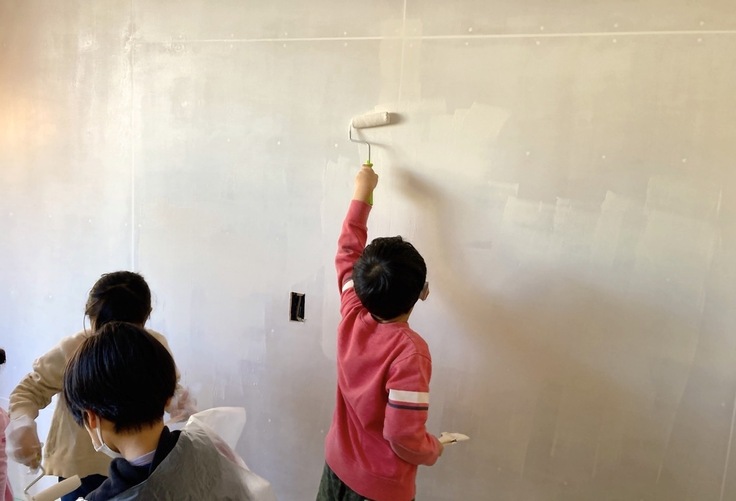 1月には、子どもたちや保護者、地域の方々20名と壁の塗装ワークショップをしました。