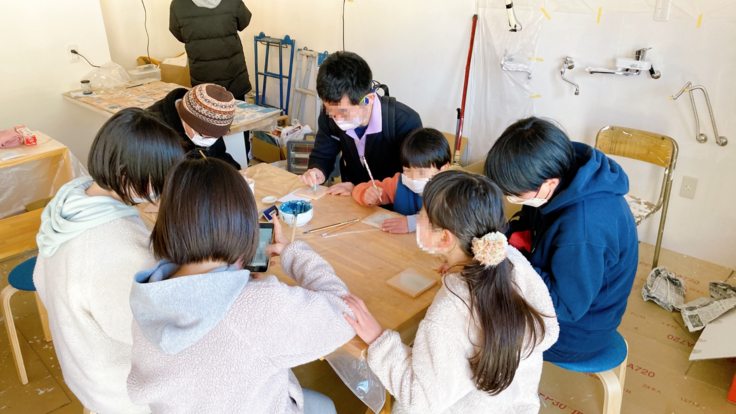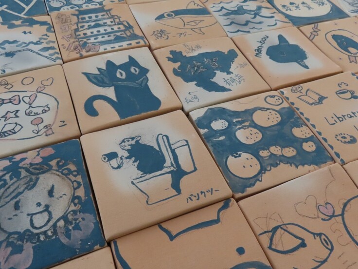 2/4(土)・2/5(日)には、タイル絵付けワークショップを行いました。児童館の子どもたちや小中高生、地域の大人たち合わせて100名以上に参加していただき、140枚以上のタイルに絵を描いてもらいました。