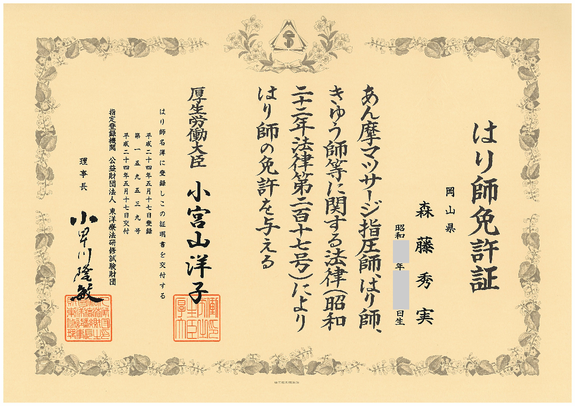 その後、国家資格である鍼灸師の免許を取得、東京大学医学部付属病院の脳神経化および婦人科で、鍼灸師として臨床研究を現在もされています。