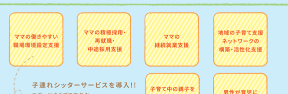 ママ活躍推進を進めたい地域企業様に、地域で働きたいママ一人ひとりのライフスタイルに寄り添った求人やママが働きやすい環境を創る社内コンテンツの導入を提案します。