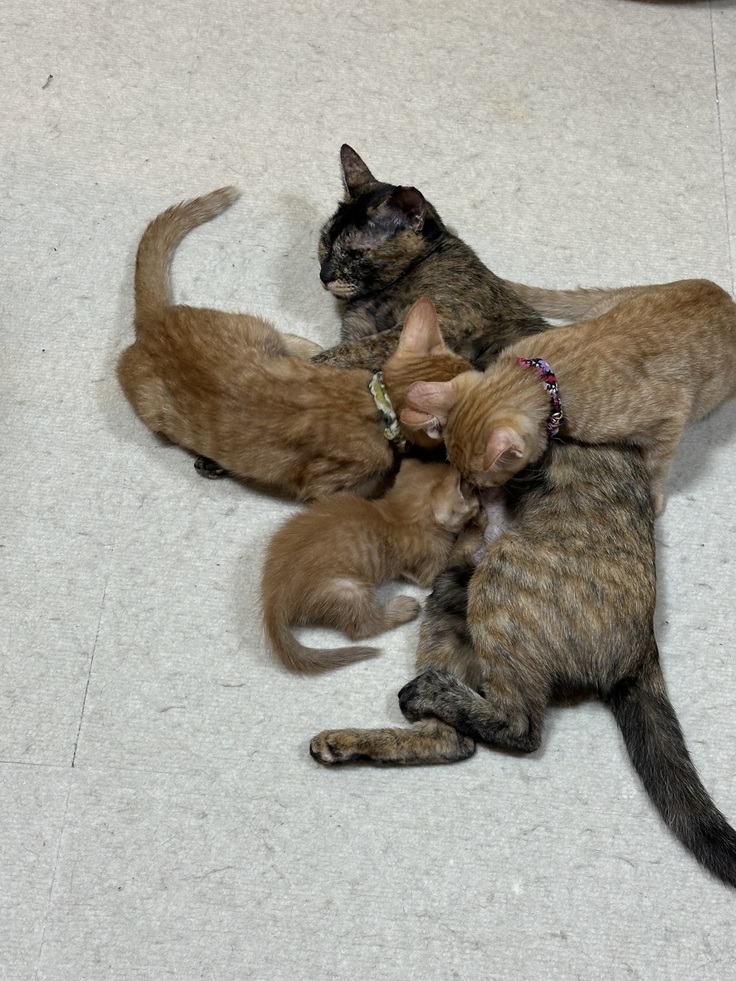 8月の終わりから次々と保護して、乳飲子3匹、2か月の子猫2匹、3か月の子猫3匹、4か月の子猫2匹と子猫だらけになっています🐱