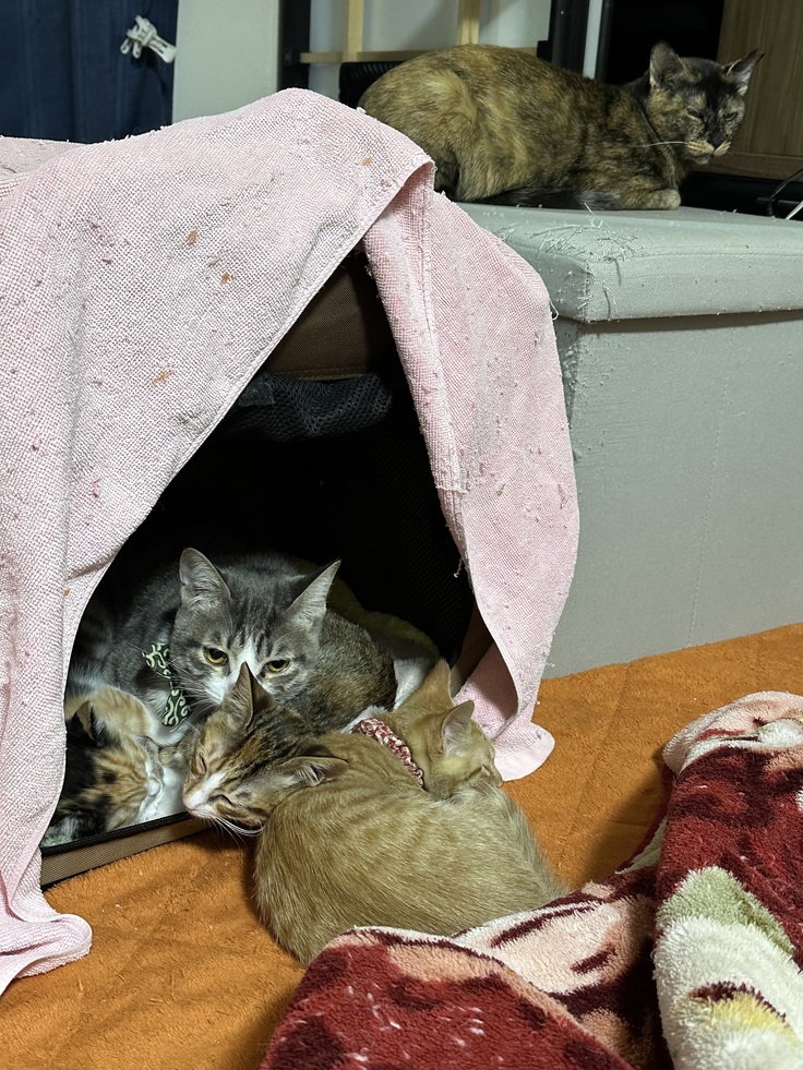 家の中でもとても寒く感じるようになりホットカーペットをつけていても保護猫達は団子になって寝ています🐱