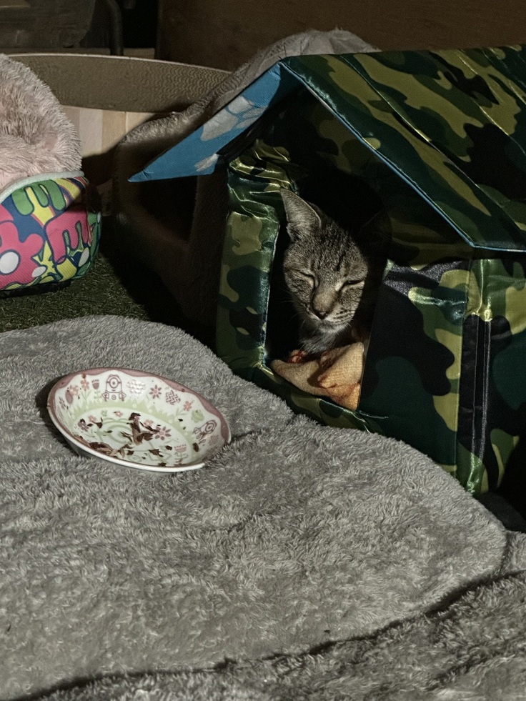 お外の子達の寒さ対策に倉庫にホットカーペットを今日からつけました😊