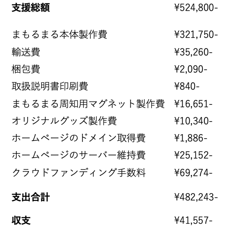 多くの皆様が後方にご協力くださった結果、本プロジェクトへの大きな期待と支援を賜り、69人の方々より、¥524,800(目標:¥410,000)のご支援をいただくことができました。