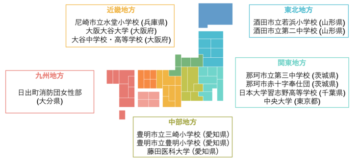 | 寄贈セット まもるまる設置先(学校・消防団)