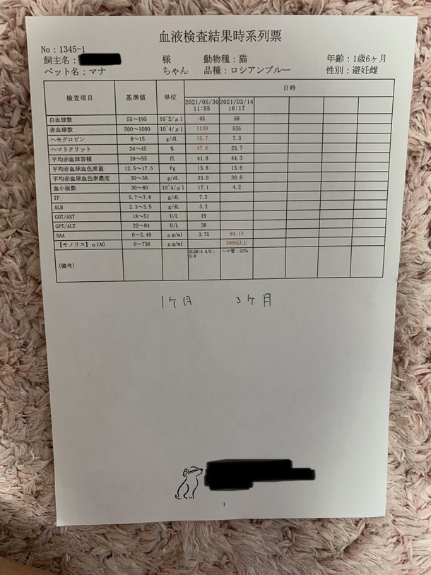 あとは外注検査の結果が後日届くので、前回猫αAGが高かったのも今回の結果を見ての判断になるとのことで保留になりました。