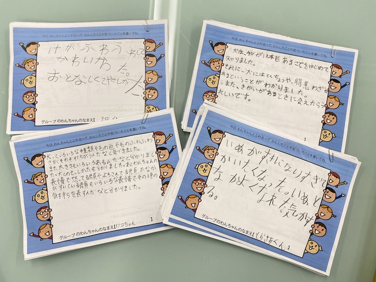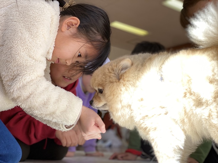 「授業前は犬を怖がっていましたが、授業で犬とふれ合い怖さがなくなり可愛かったと話していました。人間以外にも命があり、生き物を飼うということは「育てる」という必要があるということを家でも話す機会になり学びがありました」
