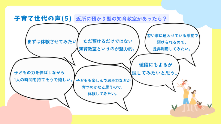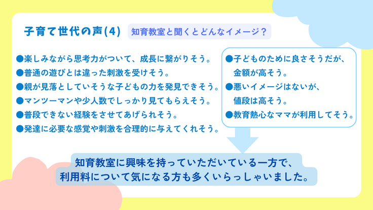 知育教室のイメージとして多くの方から「子どものためになりそう」や、