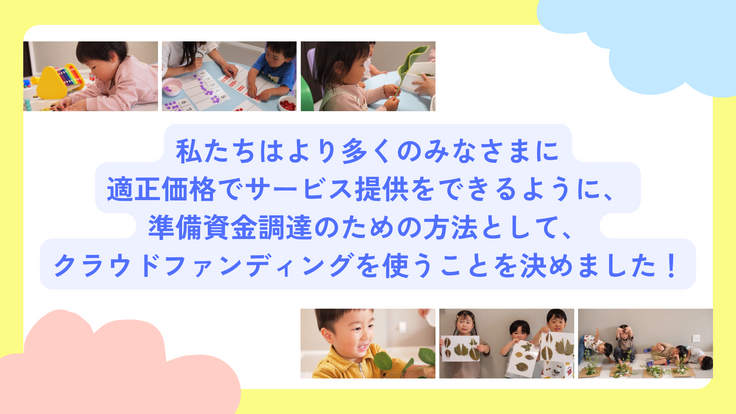 manaterra petitが名古屋市内レンタルスペースにて知育教室を開講する。頂戴した資金は、①教室の準備費・防犯カメラ等の設置費35万円、②キッズレンタルスペース利用料10万円、③教材費・玩具の購入費15万円、④保険申請費10万円、⑤HP制作費・広報費・リターン準備費25万円、⑥消耗品費5万円 の一部に使用します。