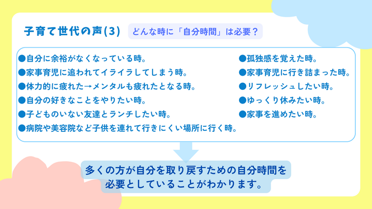 「子どもとの時間は大切。でも、少しだけ“自分の時間”があれば、もっと心に余裕が持てるのに…」