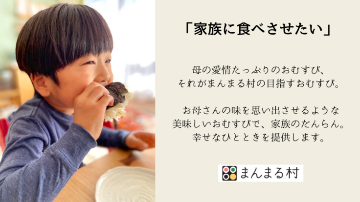 「まんまる村」は、そのような思いを伝える場所。「おむすびがおいしい!日本人でよかった!」そんな気持ちを抱いてもらえる、そんなおむすびをお客様に提供したいと思っています。