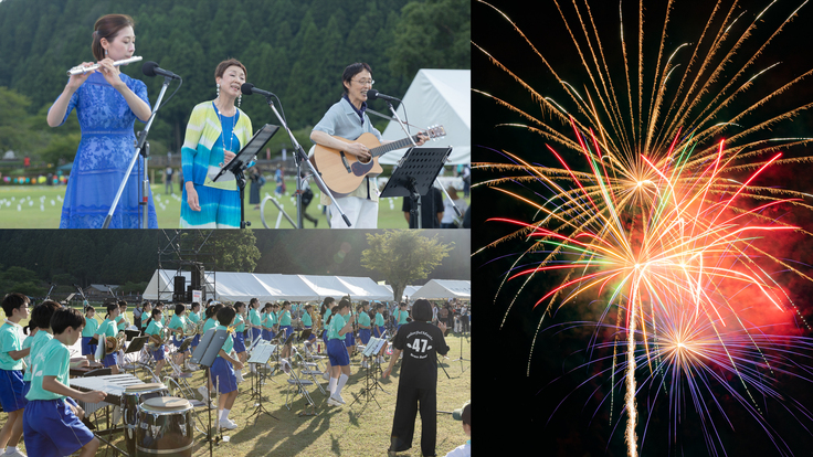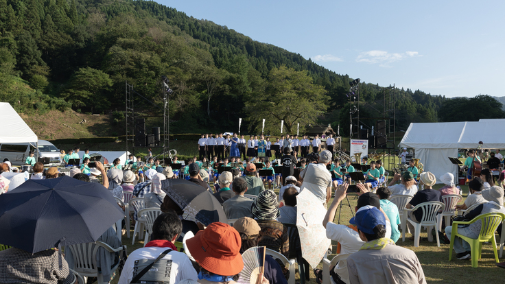 このプロジェクトのメインとなるのは、ダ・カーポの来訪と地元、福井市足羽第一中学校ブラスバンド部とのコラボレーションでした。合わせて福井市民の歌「わたしのまち ときめきのまち」を一乗谷朝倉氏遺跡での共演で披露し、多くの市民の心を温めました。また、夜には朝倉氏終焉450年の慰霊に相応しい花火が上がり、遺跡が幻想的に照らされました。