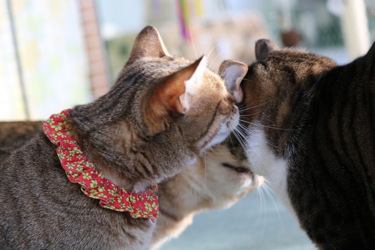 仲良しの友達も出来て、よく笑ったような表情を見せてくれるようになり、身体もふっくら、毛並みもとても良くなりました。お客様にもマシュマロボディと親しまれ、ツンデレではありますが、スタッフを始め、多くの方々がスティッチに癒される日々を送っています。