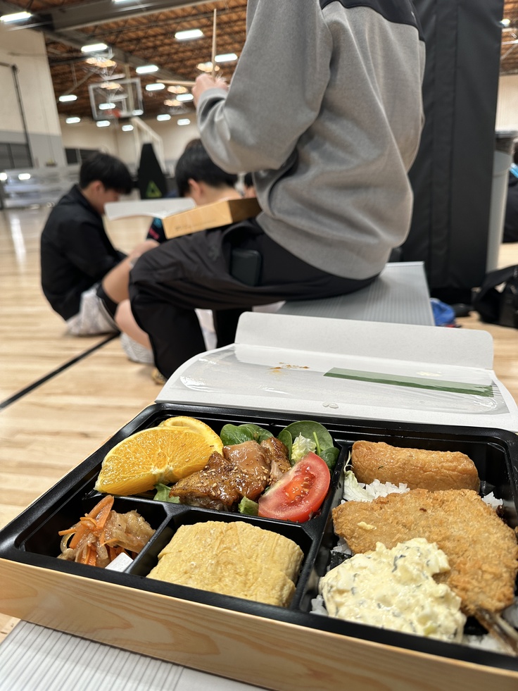 皆様の支援金のおかげで夕飯でレストランに行き豪華なディナーを食べることができたり、お昼ご飯に和食のお弁当を提供したりすることができました。1日に3回の練習があるなど体力的に厳しいスケジュールではありましたが、充実した食事に支えられて、選手はトレーニングに全力で打ち込むことができました。