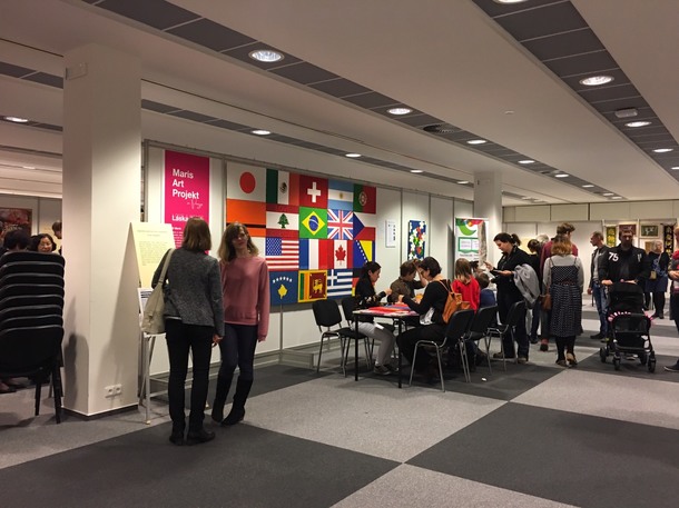 会場では大盛況となり、多くの方にご来場いただき、マリスの国旗の共同制作では列ができるほどでした!