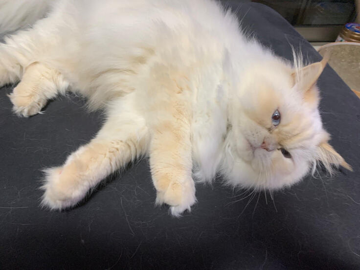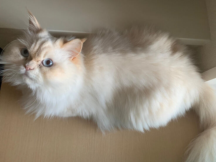 まろは2021年6月6日生まれのヒマラヤンで、ペットショップで出会い家族の一員となりました。