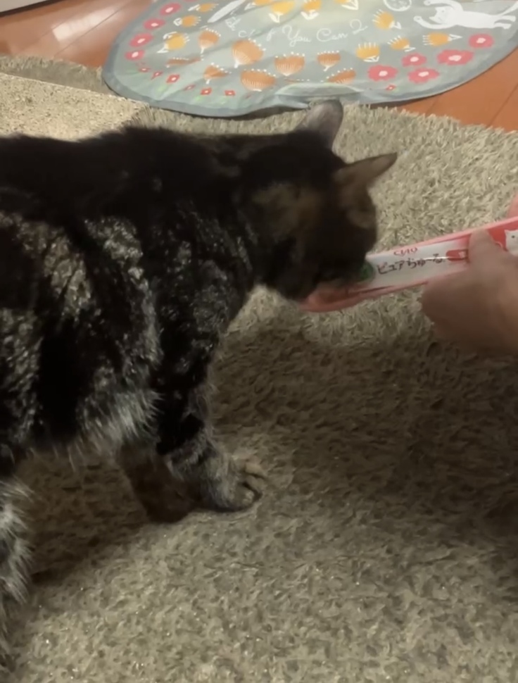抗がん剤治療前の一番しんどそうな時は、大好きなちゅーるすら口にしなかったので、治療の効果があって本当に良かったです。