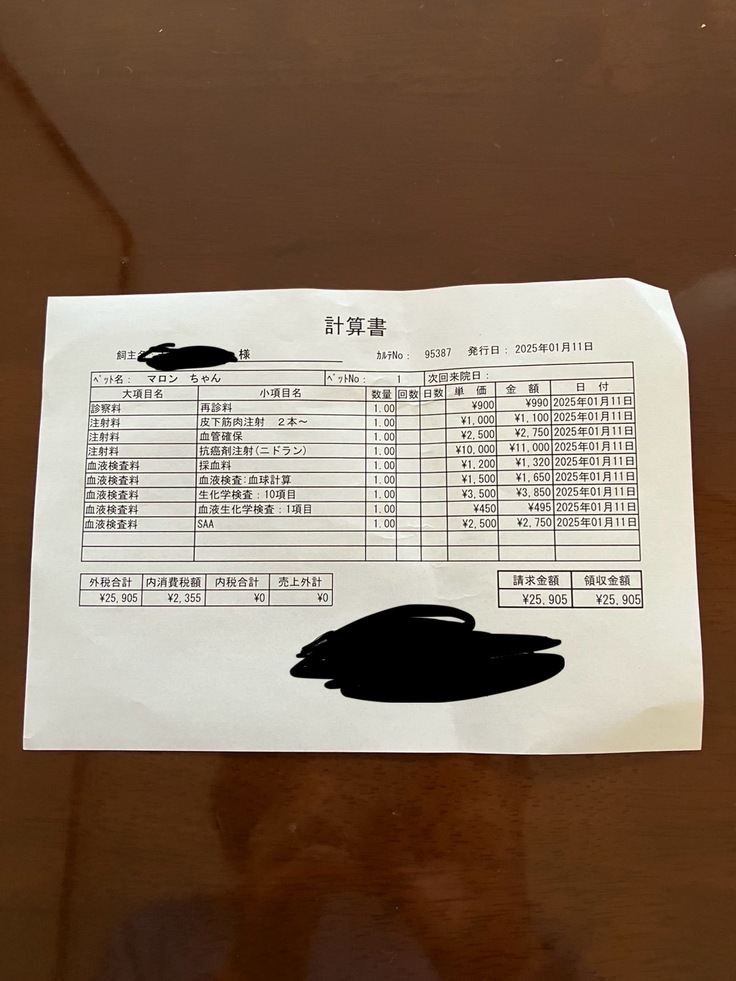 現在、6回の抗がん剤治療を行い、ステロイド等を含む治療費だけで既に20万円ほどの費用が発生しております。