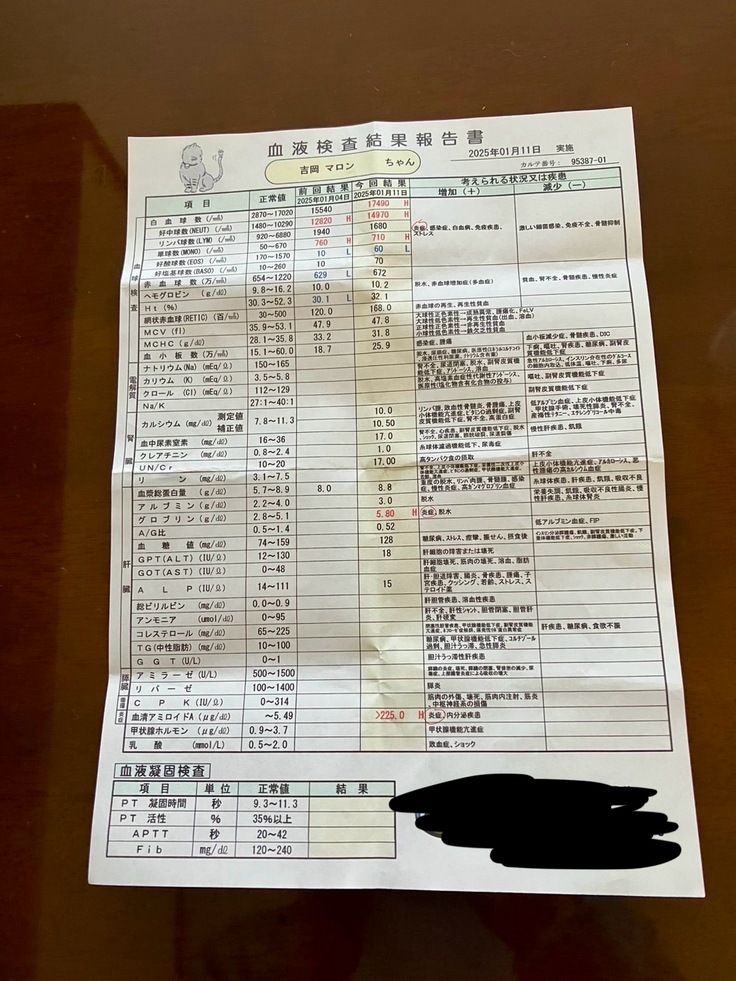 今までの傾向ですと、数日経つとまた徐々に状態が悪くなると思いますので、今まで同様、2週間~3週間に1回のペースで抗がん剤治療を行い、その間もステロイド治療を行います。