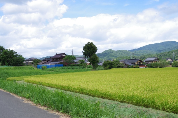 水田もある、素敵な雰囲気漂う一角に、ホップ畑はありました。